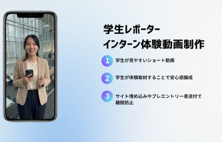 現役学生が、貴社の説明会やWebサイトをレビューし、改善ポイントや学生に響くポイントを洗い出し、貴社の情報発信の改善に繋げます。